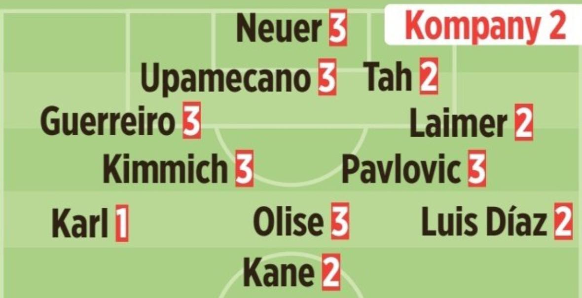 根据德国权威媒体《图片报》的评分体系(1分制最高,6分制最低),本场比赛拜仁全队呈现多点开花的态势。首发阵容中,路易斯-迪亚斯(2分)、哈里-凯恩(2分)和莱默尔(2分)组成的前场三叉戟效率惊人,而防线上的约纳坦-塔(2分)同样获得高分认可。