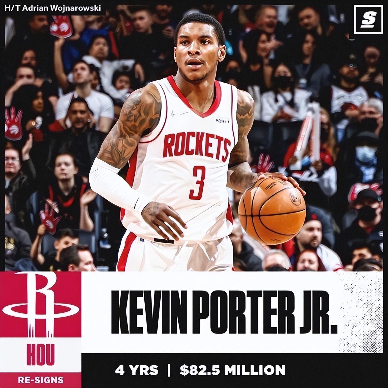 时间回溯到2022年10月17日,在续约截止日,火箭与小凯文-波特达成了一份四年8250万的合同。但仔细研究这份合同就会发现,实际上只有7105万是确定金额,另外有1145万是不易达成的激励条款。而且,合同保障情况也十分复杂,只有第一年的1586万是全额保障,第二年的1712万是部分保障,后面两年则完全不保障。