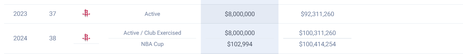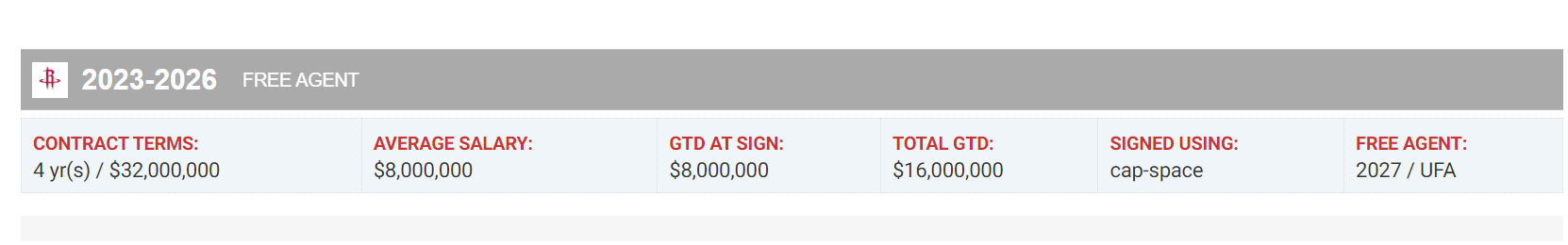 兰代尔在2023年夏也跟火箭签下了一份四年3200万的合同,这份合同每年薪水都是800万。但保障情况同样复杂,只有第一年是全额保障,第二年是部分保障,不过第二年火箭转正了他的合同。然而,在第三年的合同生效之前,火箭就裁掉了他,如今兰代尔只能在灰熊队拿底薪。