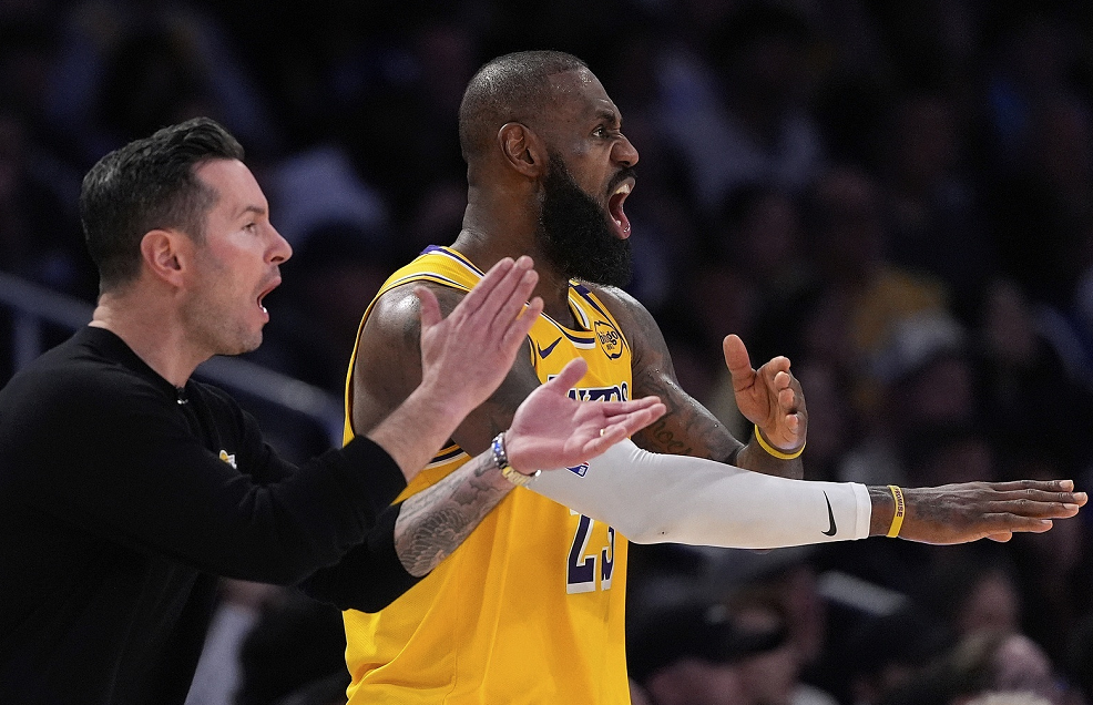 湖人终场哨声尚未吹响,与儿子肩并肩作壁上观的詹姆斯就提前开溜,略显落寞。赛后,湖人主帅雷迪克在接受采访时坦言:“上半场破不了联防时我就在想,要是有老詹在高位接球时该有多好。”没错,看看勇士队中的库里巴特勒双剑合璧和固若金汤的防线,雷迪克确实想念老詹,湖人也确实需要满分组合尽快合体。但问题在于,老詹回归之后能让湖人的进攻更丰富,可老詹拯救不了湖人的防线。湖人和卢卡更需要艾顿、斯玛特、范德彪等人构筑平均水准以上的防线。否则,就算老詹、卢卡、里夫斯三人把进攻场面整得再宏大,湖人遇见强敌也还是没有必胜的把握。球迷朋友们,你们对此怎么看呢?来给我留言评论探讨一下吧。