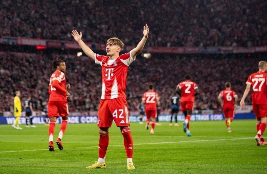 为拜仁打破僵局的小将伦纳特卡尔,以17岁242天的年龄,打破了此前由穆西亚拉(17岁363天)所保持的纪录,成为拜仁队史在欧冠改制后最年轻的进球者。赛后,这位17岁的小将也成功获得全场最佳殊荣,其未来可期。