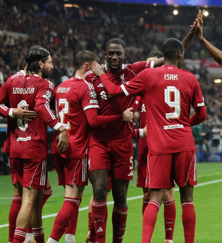 但仅9分钟后,战旧主的埃基蒂克在反击中单刀破门,将比分扳为1平。凭借此球,他成为欧战历史上首位既为法兰克福进球、又攻破其球门的球员。士气大振的利物浦3分钟后便反超比分:加克波开出左侧角球,范迪克头球建功,2-1!半场结束前,科纳特再利用角球机会头槌破门,利物浦以3-1领先结束上半场。