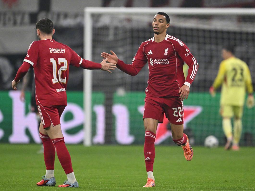 为从德意志银行公园球场带走胜利,斯洛特此役变阵442:马马尔达什维利镇守球门,弗林蓬、科纳特、范迪克和罗伯逊组成防线;维尔茨、索博斯洛伊、琼斯和加克波坐镇中场;双箭头为伊萨克搭档埃基蒂克。