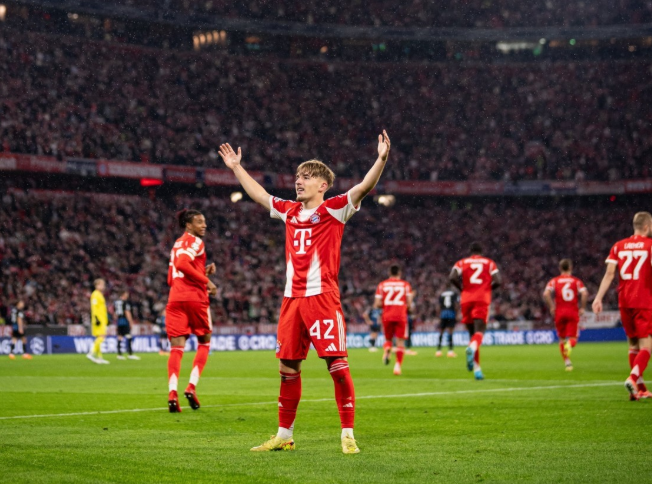 难得获得首发机会,17岁的卡尔便展现出自己的潜力;第5分钟,卡尔前场加速推进甩开3人防守包围圈到弧顶处直接起脚远射打进世界波,1:0!这是卡尔在拜仁一线队的处子球;他也以17岁242天的年龄成为拜仁在欧冠(自1992年改制以来)最年轻的进球者,打破了穆西亚拉保持的纪录(17岁363天)。