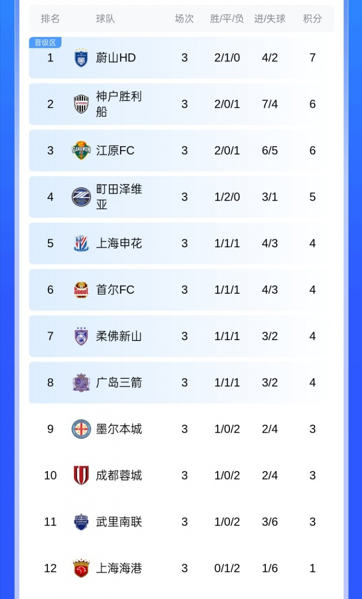 随着上海申花战胜首尔FC,成为本轮亚冠唯一取胜的中超球队,积分榜也随之更新。上海申花以4分位列积分榜第5,成都蓉城以3分位居第10,而上海海港则仅积1分,暂列垫底。