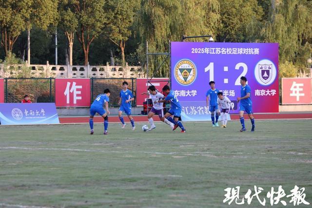 10月22日,2025年江苏名校足球对抗赛首回合赛事在东南大学九龙湖校区正式打响。这场备受瞩目的对决中,东南大学男子足球队与南京大学男子足球队展开了一场激烈的“巅峰对决”,最终东南大学以1:2的比分惜败南京大学。