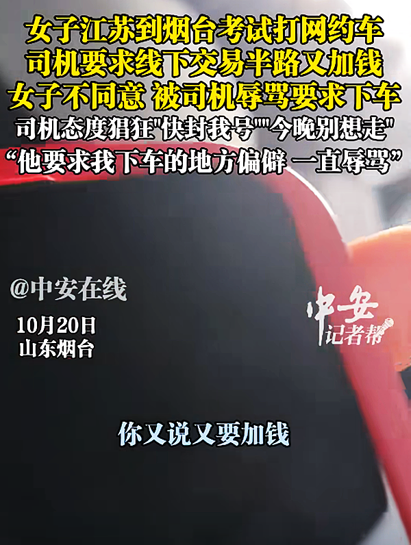因司机变卦加价,女生当即与朋友打电话沟通,司机却误以为她在投诉平台客服,随即开始威胁、辱骂,甚至呵斥其下车。由于下车地点偏僻,女生担心打不到车,未立即下车,这段争吵视频被曝光后引发广泛关注。