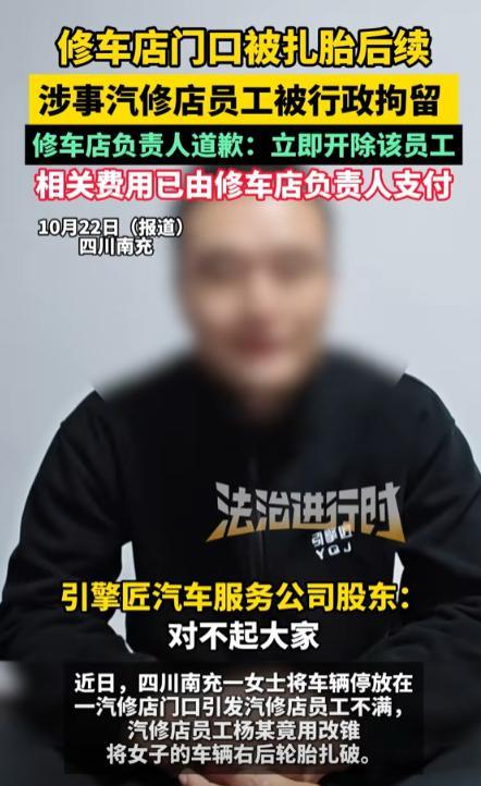 四川南充一家修车店因车主临时停车而采取极端手段扎胎的事件,近期在网络上引起了广泛关注和热议。这起原本看似普通的停车纠纷,却因修车店老板和店员的蛮横态度,以及后续的一系列发展,演变成了一场全民关注的“社死”闹剧。