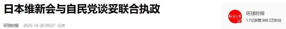 10月4日,高市早苗在自民党总裁选举中以185票击败小泉进次郎,当选自民党第29任总裁。然而,她的上台之路并不平坦。自民党与长期合作的公明党关系破裂,原有执政联盟瓦解,为了组成内阁,高市不得不与日本维新会迅速缔结联合政权,这种组合被媒体称为“闪婚式的联合”。