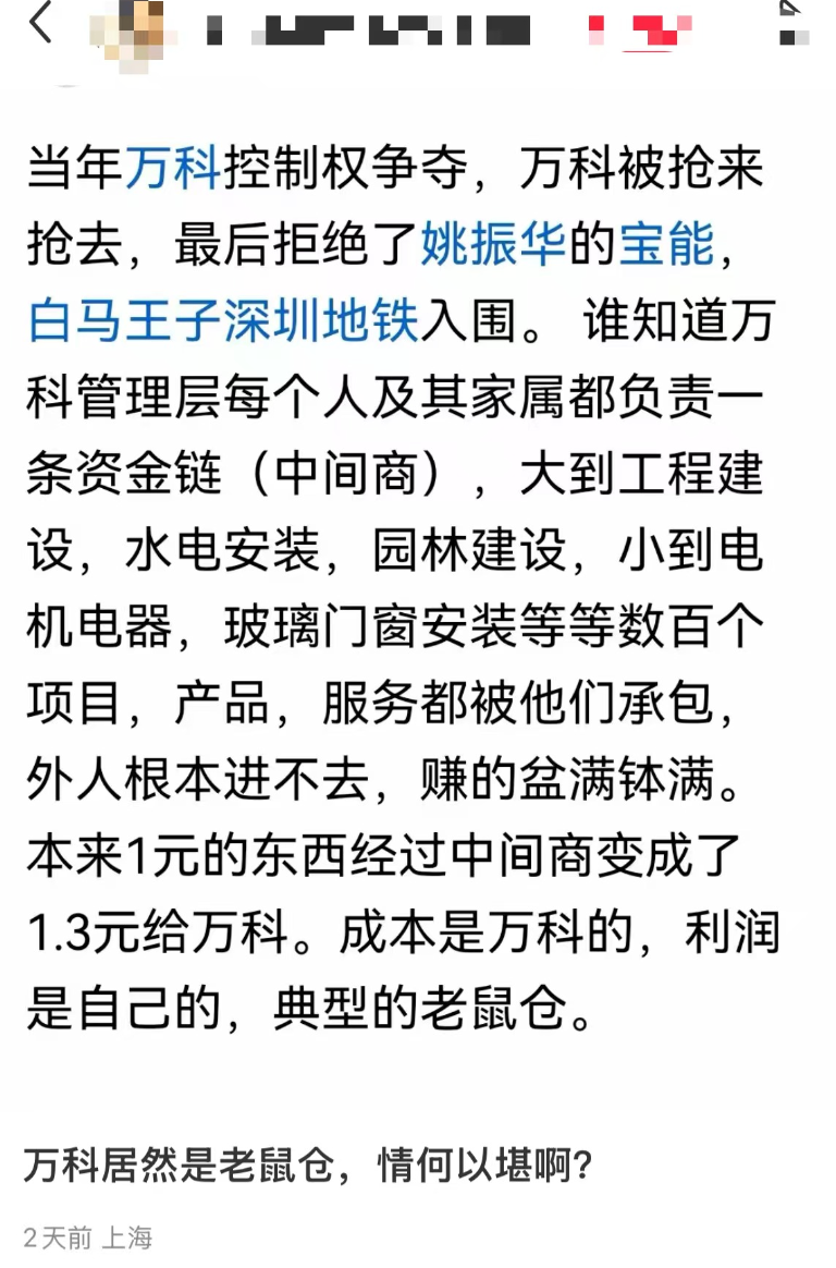 这种操作,无异于明目张胆的“老鼠仓”行为。据悉,管理层家属以1块钱的成本购入材料,转手便以1.3元的价格卖给万科,30%的差价轻松落入个人口袋。更讽刺的是,这一切发生在“宝万之争”之后,当年姚振华的宝能系举牌,王石曾高呼“防野蛮人”,深圳地铁作为“白衣骑士”入主,本以为公司治理会从此走上正轨,然而如今看来,内鬼却早已盘踞多年。