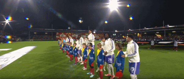 赛前双方球员列队入场,现场气氛热烈,球迷期待一场精彩对决。