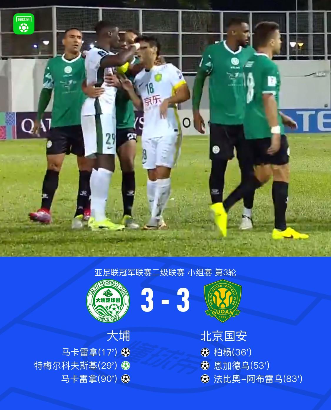 北京时间10月23日,2025赛季亚足联冠军联赛二级联赛小组赛第3轮展开激烈争夺,大埔队主场迎战北京国安队。最终,双方以3-3的比分握手言和,为球迷奉献了一场跌宕起伏的精彩对决。