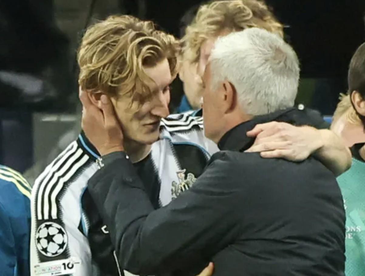 安东尼-戈登在周二晚上的欧冠比赛中表现惊艳,他的速度和突破能力让对手防不胜防。比赛结束时,穆里尼奥几乎迫不及待地冲上场去,向他表示敬意。戈登不仅打入一球,还助攻队友得分,成为纽卡斯尔联获胜的关键人物。穆里尼奥赛后对他赞不绝口:“你太厉害了!”并直接将他评为本场比赛的最佳球员。