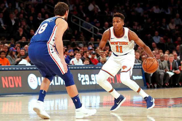 然而,现实却冰冷得令人窒息。尼利基纳的新秀赛季场均仅得5.9分、2.3个篮板和3.2次助攻,投篮命中率36.6%,三分命中率32.8%,真实命中率低至45.4%。在尼克斯的三年里,他的数据毫无起色,几乎每个赛季都是联盟进攻高阶数据里的倒数球员。麦迪逊广场花园的球迷们逐渐发现,这位年轻后卫的进攻能力存在致命缺陷:缺乏稳定的投射能力,突破效率低下,且在高压防守下容易失误。
