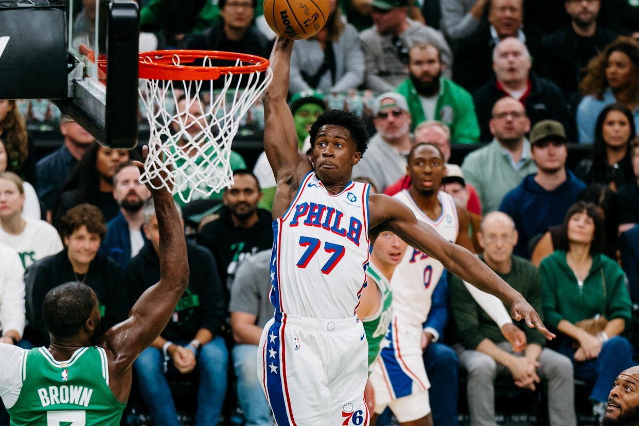 在经历了一个赛季的挣扎后,76人幸运地抽到了探花签,并选中了VJ·埃奇库姆。没想到,这位新秀在职业生涯的第一场常规赛中就爆发出了惊人的能量。比赛一开始,埃奇库姆就手感火热,迅速砍下20分。相比之下,球队的“原老大”、昔日MVP得主恩比德则显得相当低迷,除了熟悉的招牌中距离投篮外,全场再无其他运动战进球。恩比德的隐身,反而让埃奇库姆的光芒更加耀眼。他凭借出色的爆发力连续冲击波士顿禁区,让北岸花园球馆陷入了寂静。各种进攻手段信手拈来,完全不像是一个新秀的表现。