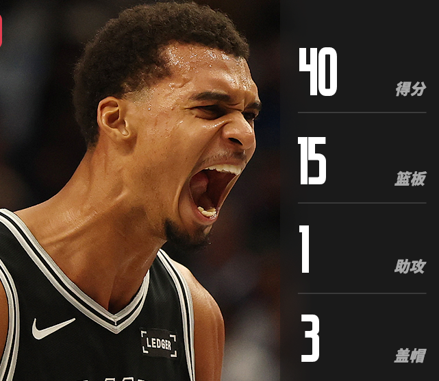 文班亚马砍下40分15篮板3盖帽,而且他只上场了30分钟不到,一次失误没有。相比之下,弗拉格13投4中拿下10分,还有3次失误。这数据作为新秀而言并不差,但考虑到他这些得分几乎都是垃圾时间拿到的(开局他7投1中,顺带一提杨瀚森拿分比他更早),含金量也要打上一些折扣。