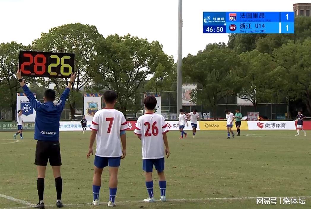 另一场焦点战中,浙江U14队对阵法国里昂队。开场后,浙江U14队频繁发起进攻,但久攻不下。第30分钟,后防线出现严重漏洞,被里昂队11号球员抓住机会冲开防线破门,里昂队取得领先。