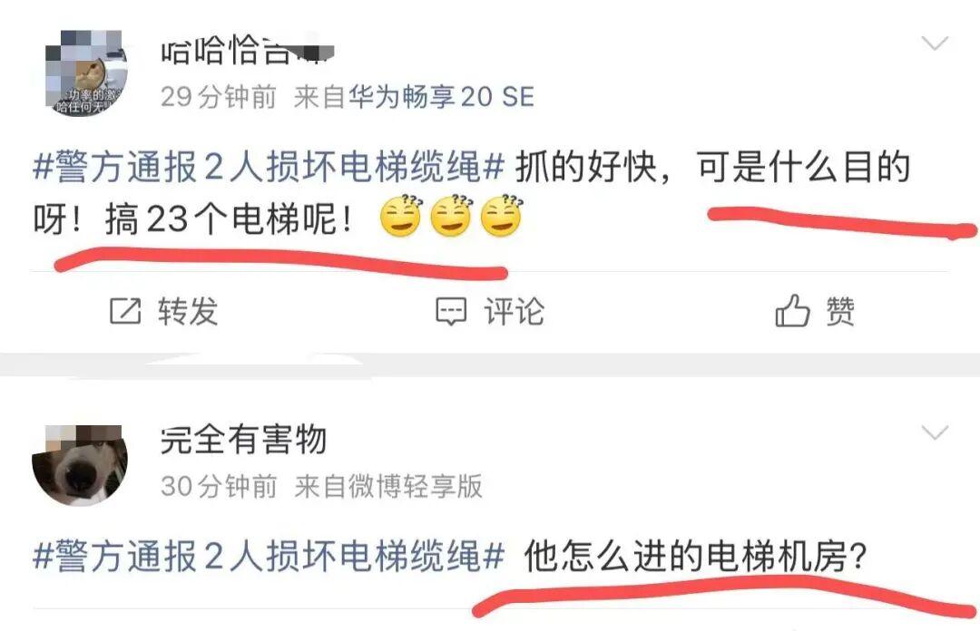 据警方通报,涉事小区共有50部电梯,其中23部缆绳被人为破坏。两名犯罪嫌疑人已被刑事拘留,但案件背后暴露的问题更值得深思。若非检修人员及时发现,这些被破坏的电梯在早晚高峰期间发生坠落,后果将不堪设想——高层住宅居民的生命安全将完全失去保障。