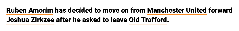 据「曼彻斯特世界」披露,阿莫林直言齐尔克泽不具备长期担任曼联前锋的条件。里奇·费伊分析称:「当不采用中锋战术时,曼联会启用库尼亚、姆贝莫的无锋阵型,这可能是本赛季的B计划。主教练认为齐尔克泽在9号位缺乏鲜明战术价值。」
