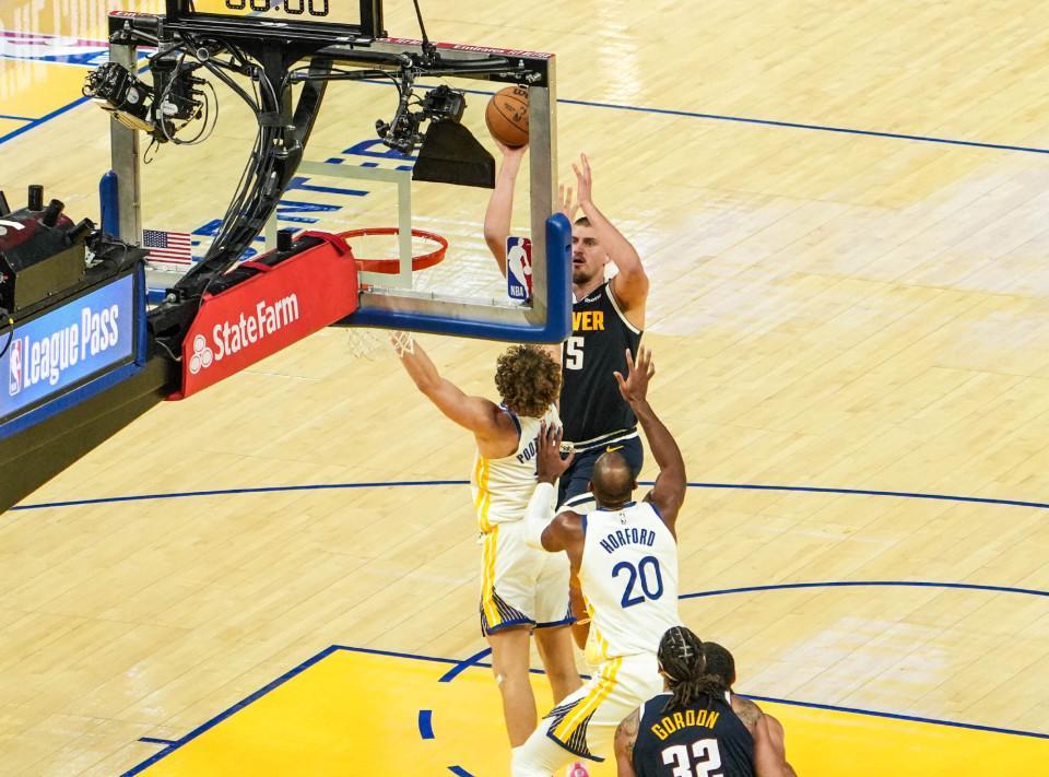掘金虽败犹荣,阿隆·戈登的爆发堪称神迹。这位前锋全场21投17中,三分球11投10中(追平NBA历史单场三分命中数纪录),狂轰50分8篮板2助攻。第四节他与库里的对飙大战,成为比赛最精彩篇章。可惜50分生涯新高之夜,最终未能换来一场胜利。