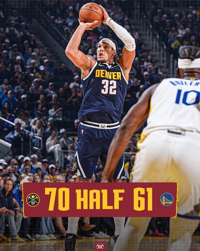 北京时间10月24日,NBA常规赛激战正酣,勇士坐镇主场迎战实力强劲的掘金队。本场比赛,勇士队开局势头迅猛,迅速取得10-0的领先,然而掘金队迅速反击,以一波12-0的攻势强势回应,之后更是掌控了场上的主动权。尽管勇士队努力咬住比分,但在第二节,掘金队的进攻火力全开,戈登外线三分连连命中,一度将领先优势扩大至14分。最终,勇士队在半场结束时以61-70落后于掘金。