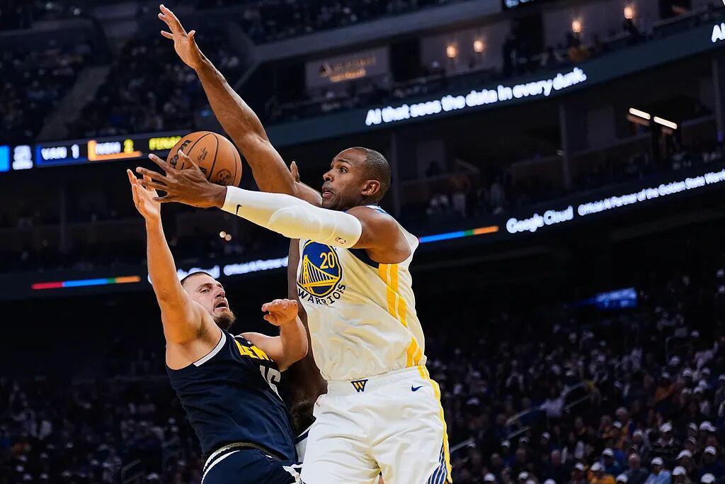 面对掘金的内线冲击,勇士祭出库里、德雷蒙德·格林、霍福德和巴特勒的"四老"组合。39岁的霍福德替补出场23分钟,贡献11分6篮板3盖帽,其中第二节的三分球和防守端的大帽,直接回应了外界对其年龄的质疑。ESPN数据显示,霍福德过去三个赛季三分命中数(312个)和命中率(40.9%)均位列中锋之首,其空间型打法完美适配勇士体系。巴特勒则贡献18分5篮板4助攻,与库里形成双核驱动。
