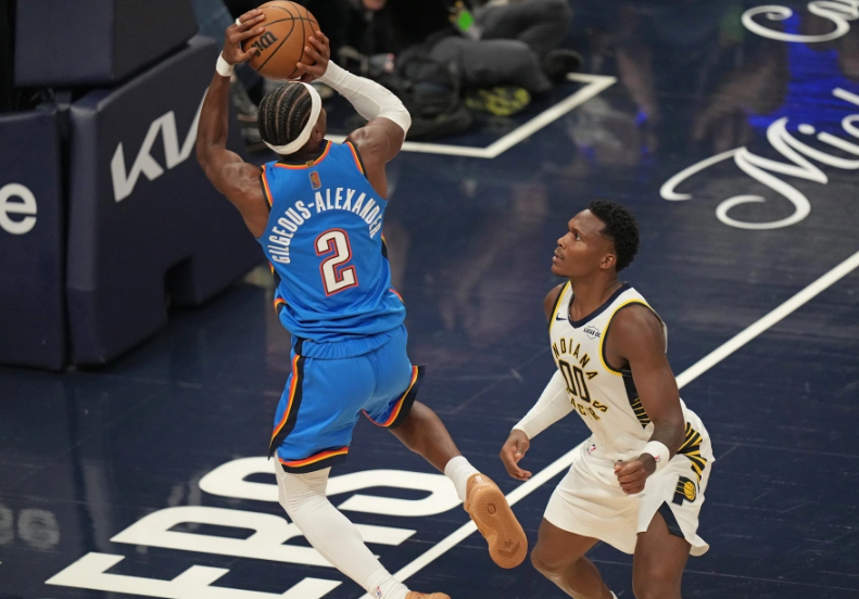 首节步行者反客为主,马瑟琳内突外投,西卡连中三分,一度领先3分。次节亚历山大开启得分模式,配合杰林与杨布拉德的三分雨反超比分。半场战罢,亚历山大独得21分,雷霆领先7分。