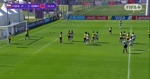 第37分钟,黄欣怡曾打入一球,但经VAR确认越位在先,进球无效。第40分钟,厄瓜多尔队西奥马拉·阿尔西瓦头球攻门,中国队门将牛子琪飞身将球托出,力保球门不失。