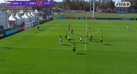 上半场尾声阶段,曾屹婕开出角球,厄瓜多尔队防守球员解围失误,皮球弹地后飞向右侧。后点跟进的宋语轻松头球破门!中国队带着4-0的巨大优势结束上半场。