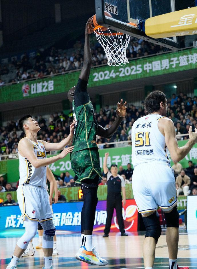 法尔与CBA的缘分始于22-23赛季,当时他加盟了新疆男篮,成为了球队争冠的重要拼图。在那个赛季里,法尔场均出战26.2分钟,贡献13.8分10.1篮板3.3盖帽的全面数据,更是荣膺CBA盖帽王,并成为扣篮次数最多的球员。尽管法尔在篮板和防守方面表现出色,但他的进攻手段相对单一,罚球命中率也有待提高,因此新疆男篮在赛季结束后并未选择续约。