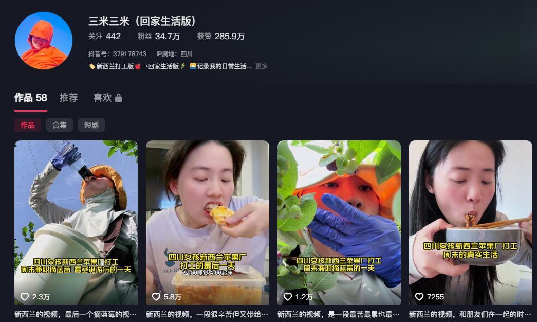 不仅如此三米的自媒体也是做的风生水起的,凭借分享自己在新西兰的打工生活有了几十万粉丝。