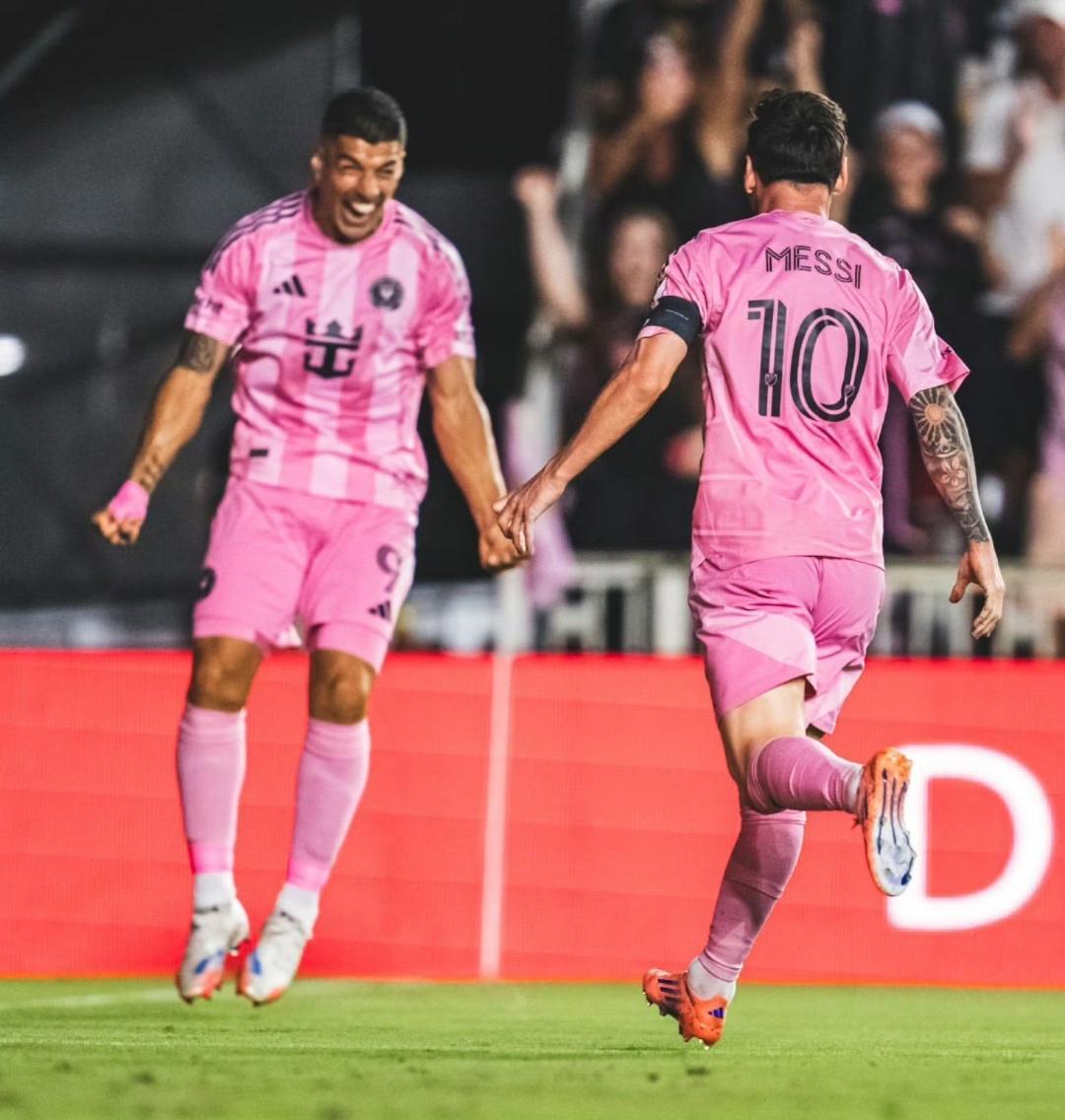 比赛第19分钟,迈阿密国际前场四人组打出精妙配合:德保罗直塞梅西,后者带球分边后快速前插,苏亚雷斯心领神会送出传中,梅西鱼跃冲顶破门。这记进球从策动到终结一气呵成,迈阿密国际1-0领先。