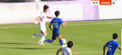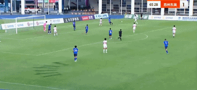 第45+2分钟,袁俊杰补射率先得分,苏州东吴1-0领先