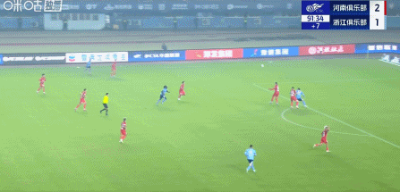 补时阶段第90+2分钟,李提香长传,亚戈-卡列洛凭借个人能力小角度破门完成梅开二度,浙江队最终2-2绝平河南队。