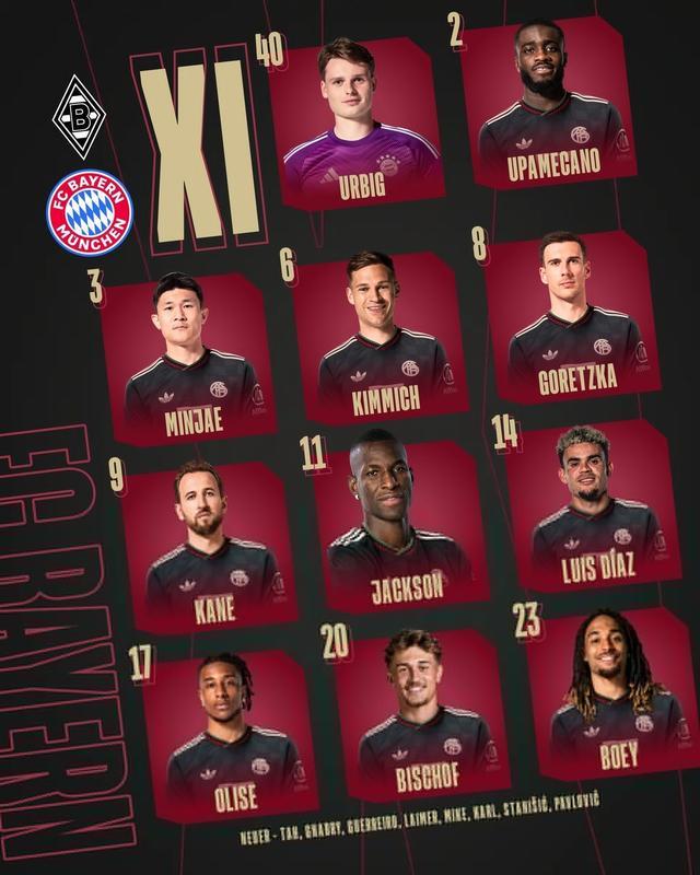 北京时间10月25日21:30,德甲联赛第8轮迎来一场焦点对决,拜仁慕尼黑作客普鲁士公园球场挑战门兴格拉德巴赫。本场比赛由主裁判施特格曼执法,赛前双方公布了首发阵容。