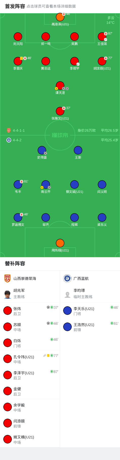 广西蓝航方面,史传盛和南云齐的进球一度让球队看到胜利希望,但最终未能守住优势。