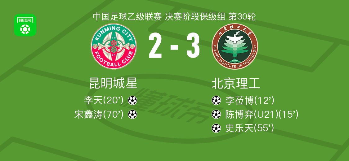尽管昆明城星在比赛尾声奋力反扑,但最终仍未能挽回败局。全场比赛结束,最终比分为昆明城星2 - 3北京理工,北京理工在这场保级大战中艰难取胜。