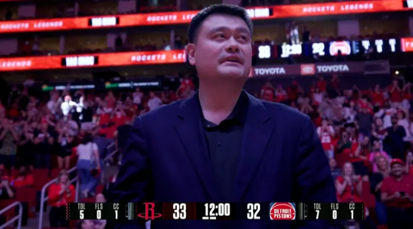 3. 火箭名宿姚明现场观战,球队官方为其制作致敬视频。