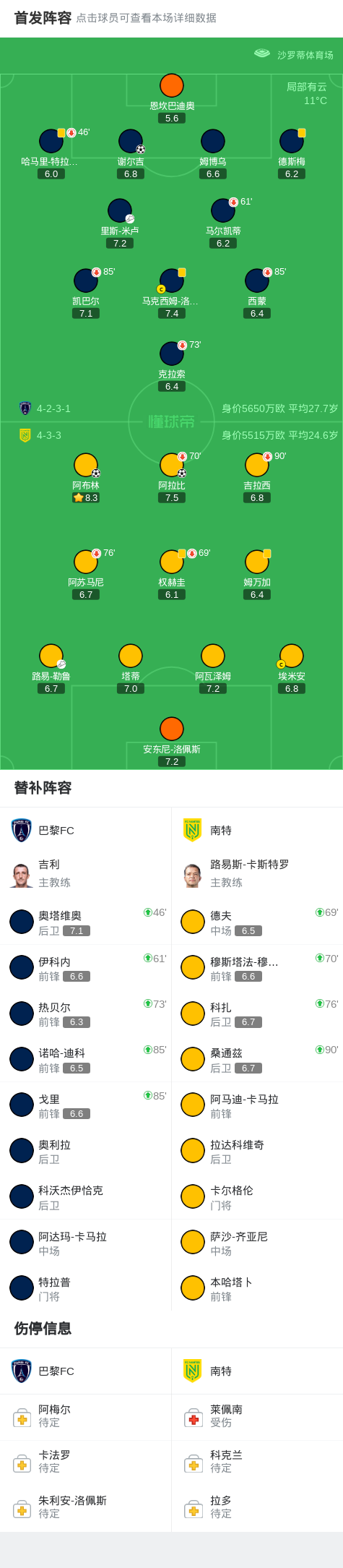 第38分钟,南特卷土重来,阿布林突破后完成破门,帮助球队再度取得领先。此后双方均未能改写比分,最终南特以2比1的比分战胜巴黎FC,赢得这场关键比赛的胜利。