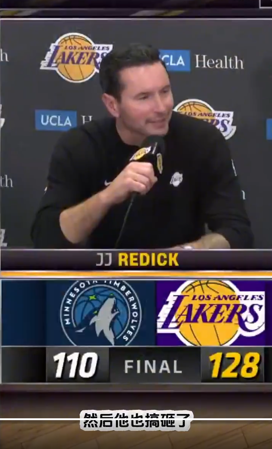 赛后发布会上,有记者提问湖人主教练雷迪克:“东契奇上篮不中之后,你对他说了什么吗?当时看到你和他有一些交流。”雷迪克笑着回答:“当时,我们确实有一些讨论。我是想让他拿下50分,所以我给了他3次机会,又给了他第4次机会,结果他被犯规了。然后,他搞砸了。”