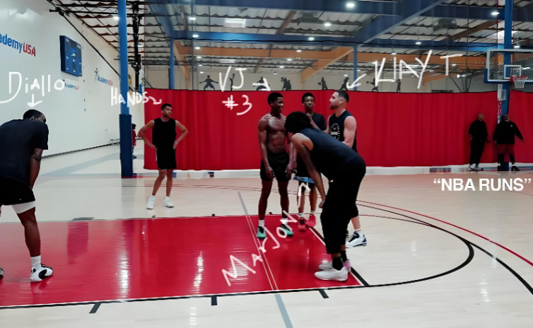 这场特殊对抗采用极端规则:球员在中距离接球后,必须在5秒内完成进攻(远低于正式比赛的24秒)。贝勒大学出品的埃奇库姆率先发难,先是以一记后仰中距离跳投打破僵局,紧接着用左手高打板上篮展现细腻手感。对面的马克西则凭借闪电般的第一步直杀篮下,随后完成一记高难度转身跳投。