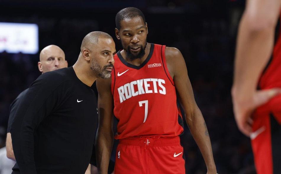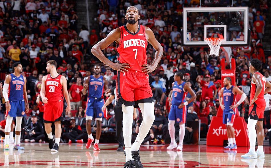 整个上半场,比赛进行得非常碎片化,几乎没有流畅的攻势。客场作战的活塞队斗志十足,防守端侵略性十足。即便是杜伦被罚下,活塞队也利用不断的换人和战术变化,始终保持场上的主动性。而火箭队则显得有些慌乱,申京在进攻端遭遇严防死守,完全找不到感觉。杜兰特虽然利用个人能力全力帮助球队僵持比分,但整体的战术比较死板,几乎都是申京和杜兰特持球单打,其他球员无球跑动很少。