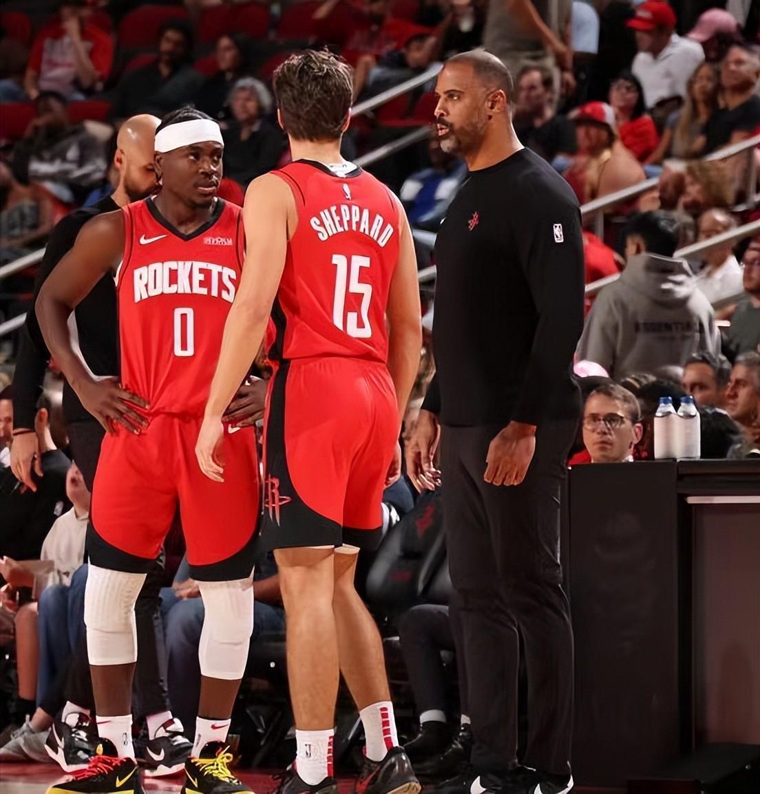 失去范乔丹后,火箭外线火力与组织串联出现真空。教练组被迫启用新秀谢波德,但首战对阵雷霆便暴露严重问题:防守漏人、进攻粘球、组织混乱,最终导致揭幕战失利。这种单打独斗的战术体系,在强敌面前显得力不从心。