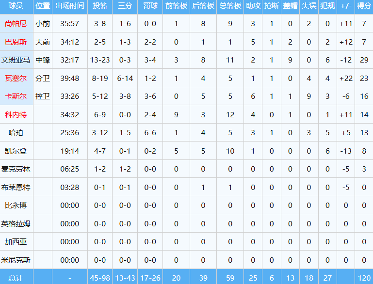 在这场马刺与鹈鹕的较量中,文班亚马以29分11板9帽的超级准三双数据惊艳全场,而锡安则以27分10板7助3断的全面表现予以回应。最终,马刺以120-116击败鹈鹕,拿下开赛两连胜,目前战绩高居西部榜首。