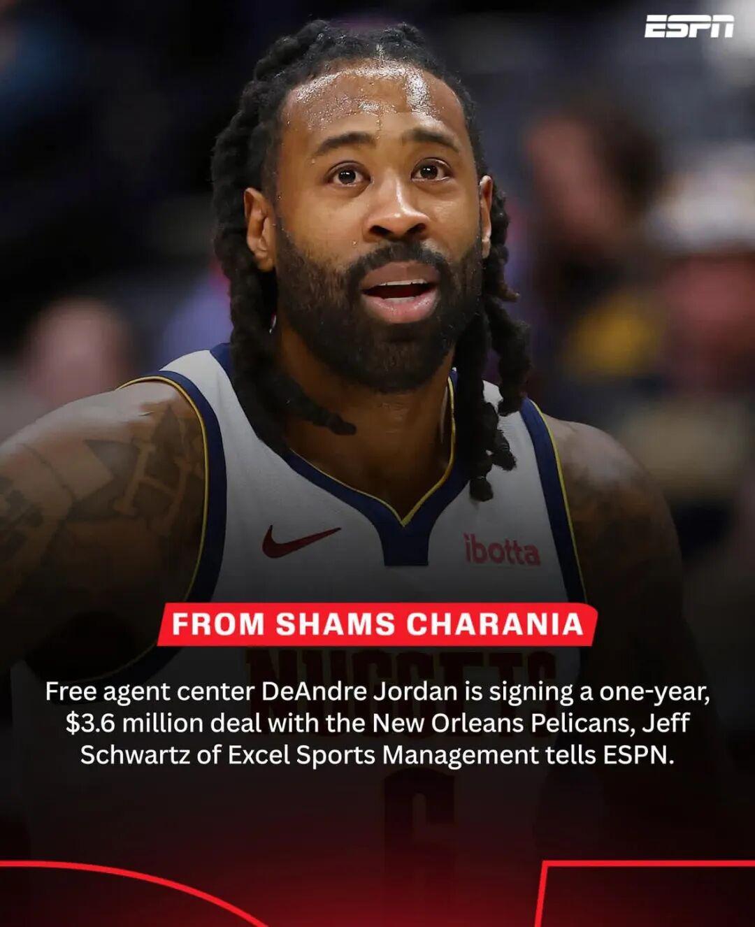 据知名记者Shams报道,小乔丹以一年360万美元的合同加盟鹈鹕,正式开启了他个人职业生涯的第18个赛季。这位上赛季还在掘金效力的老将,常规赛场均贡献3.7分5.1板,季后赛则是场均0.9分1.3板。虽然数据不再耀眼,但他的经验和防守意识仍然是球队宝贵的财富。