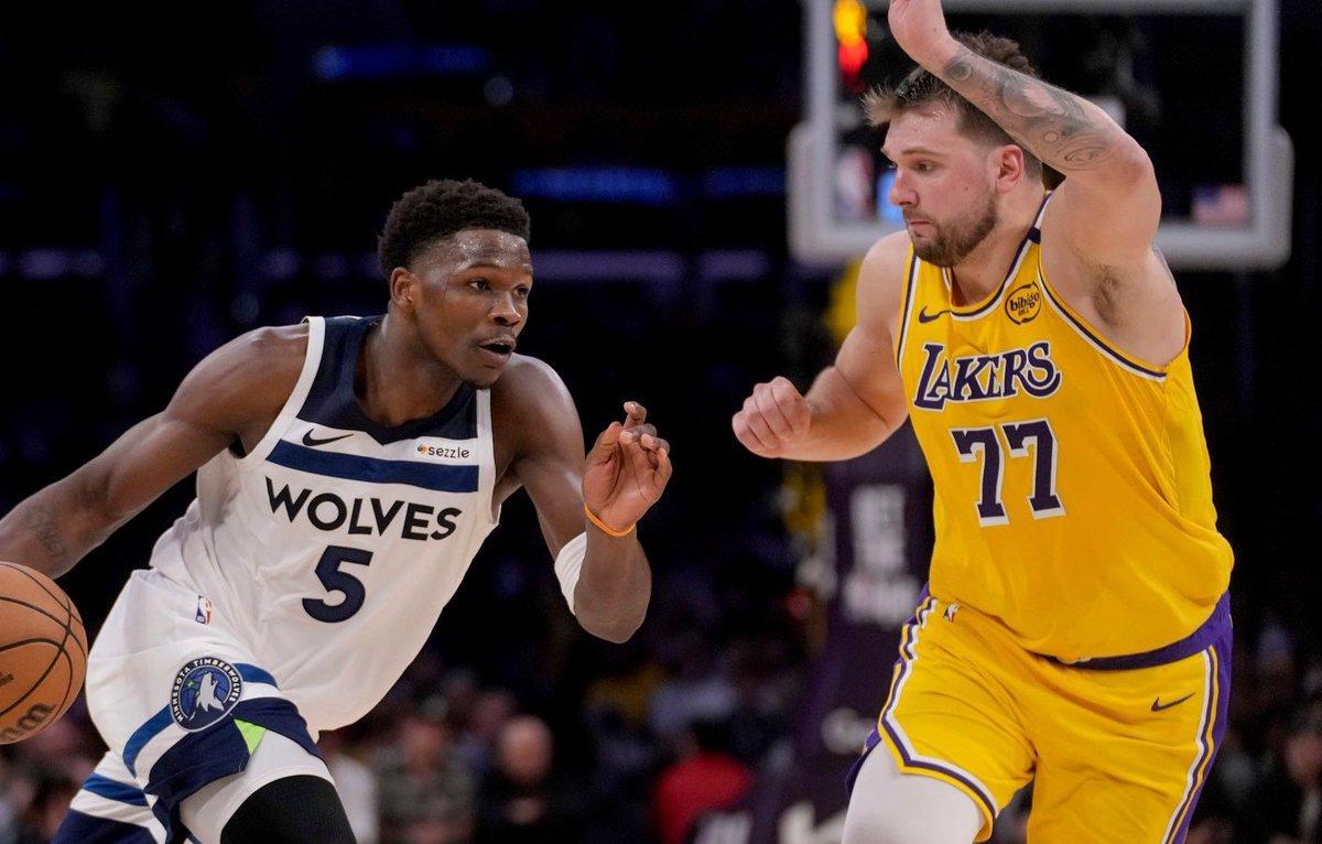 首节比赛,森林狼反客为主,在安东尼·爱德华兹的带领下内外开花,一度将分差扩大至11分。东契奇随即开启得分模式,单节轰下23分(12投8中,三分7中4,罚球5中3),帮助湖人紧咬比分。首节战罢,森林狼以40-36领先。