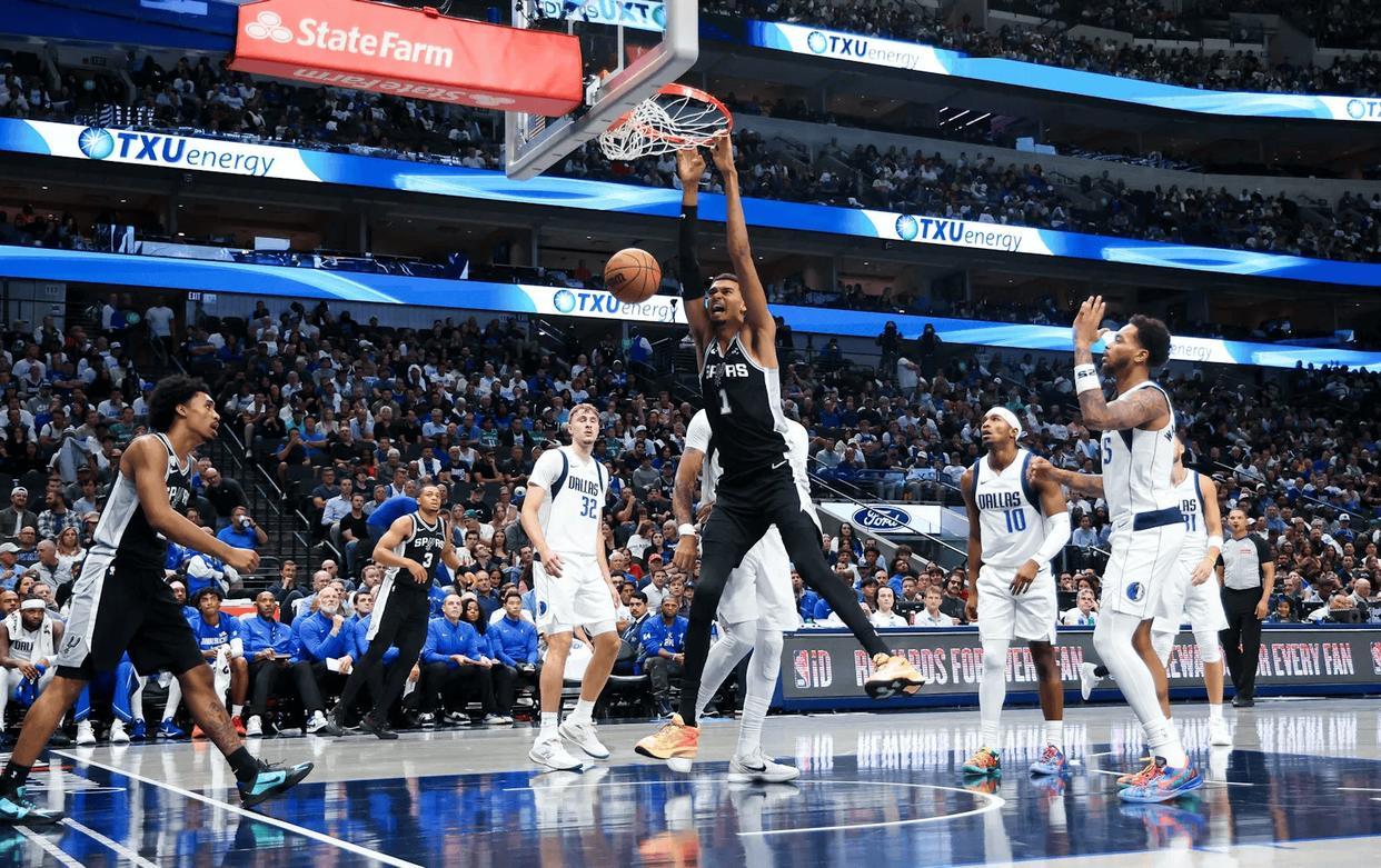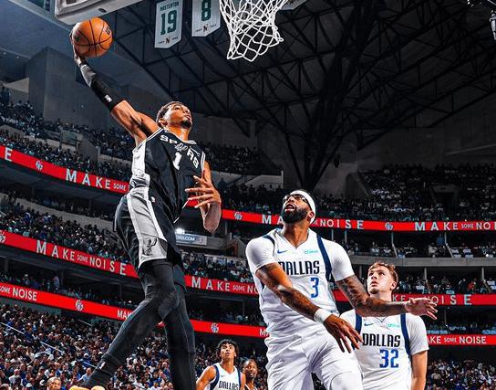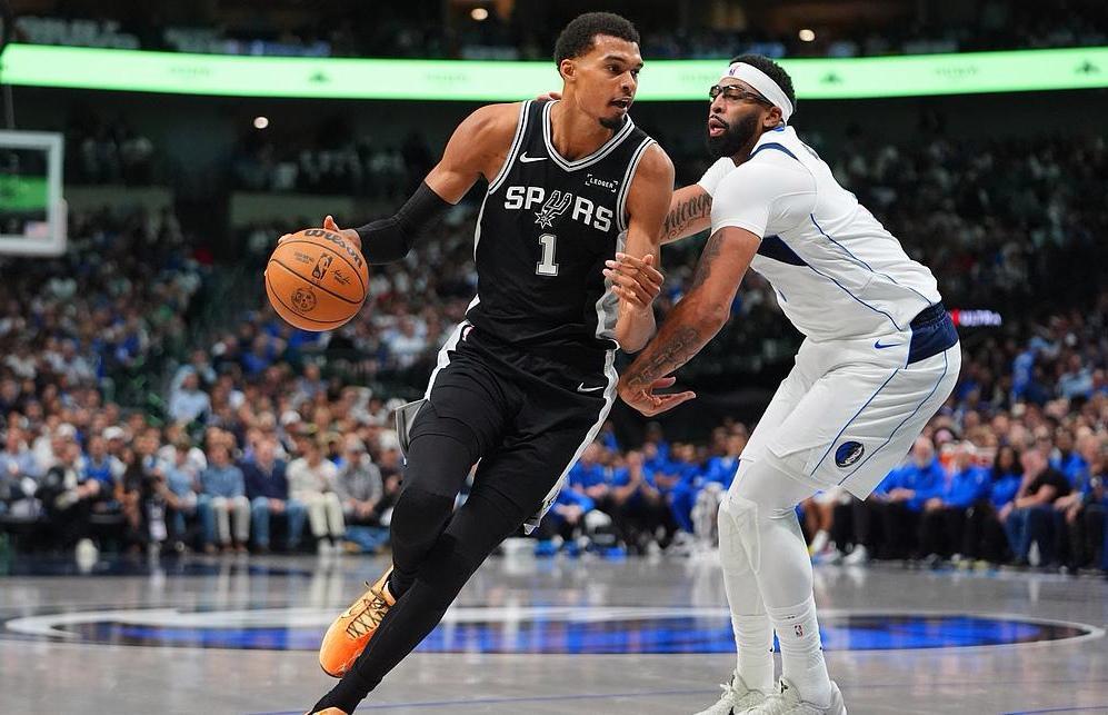 然而,若要从中选出一位统治力最强、比赛观感最为震撼的球员,那非马刺球星维克托-文班亚马莫属。揭幕战面对独行侠,文班亚马仅出战30分钟,便轰出40分15篮板3盖帽的大号两双。若非独行侠早早被打花,文班亚马再多上场一段时间,得分破50也是轻而易举之事。上赛季常规赛,文班亚马便已有多次单场炸裂表现,令人印象深刻。去年11月与奇才的比赛,他29投18中,高效砍下50分,打破个人单场得分最高纪录。如今,他已不再是那个初入茅庐、看起来弱不禁风的新秀状元,而是能够轻松拿高分,向约基奇、字母哥这样的超巨看齐。