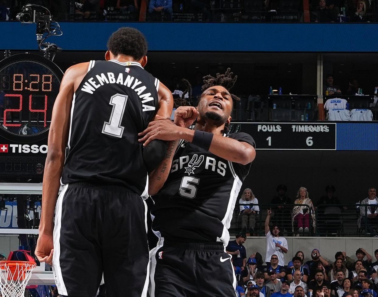 回看揭幕战与独行侠的比赛,文班亚马的40+15+3,且命中率70%+、0次失误,他成为NBA历史上首位拿到这样数据的球员。40分也刷新了马刺队史的揭幕战单场得分纪录。同时,文班亚马连续43场比赛至少拿到1个盖帽+投进1个三分,同样是历史第一。数据或许还不足以完全体现文班亚马的恐怖之处,从场上观感来看,他在攻防两端几乎无所不能,比上赛季真的进化了不少。主要体现在自主进攻能力上,他的持球技术越来越细腻,各种高难度翻身跳投弹无虚发,这在上赛季是极其罕见的。最重要的是,休赛期文班亚马还进行了增肌,下盘更稳,受伤风险也降低不少。