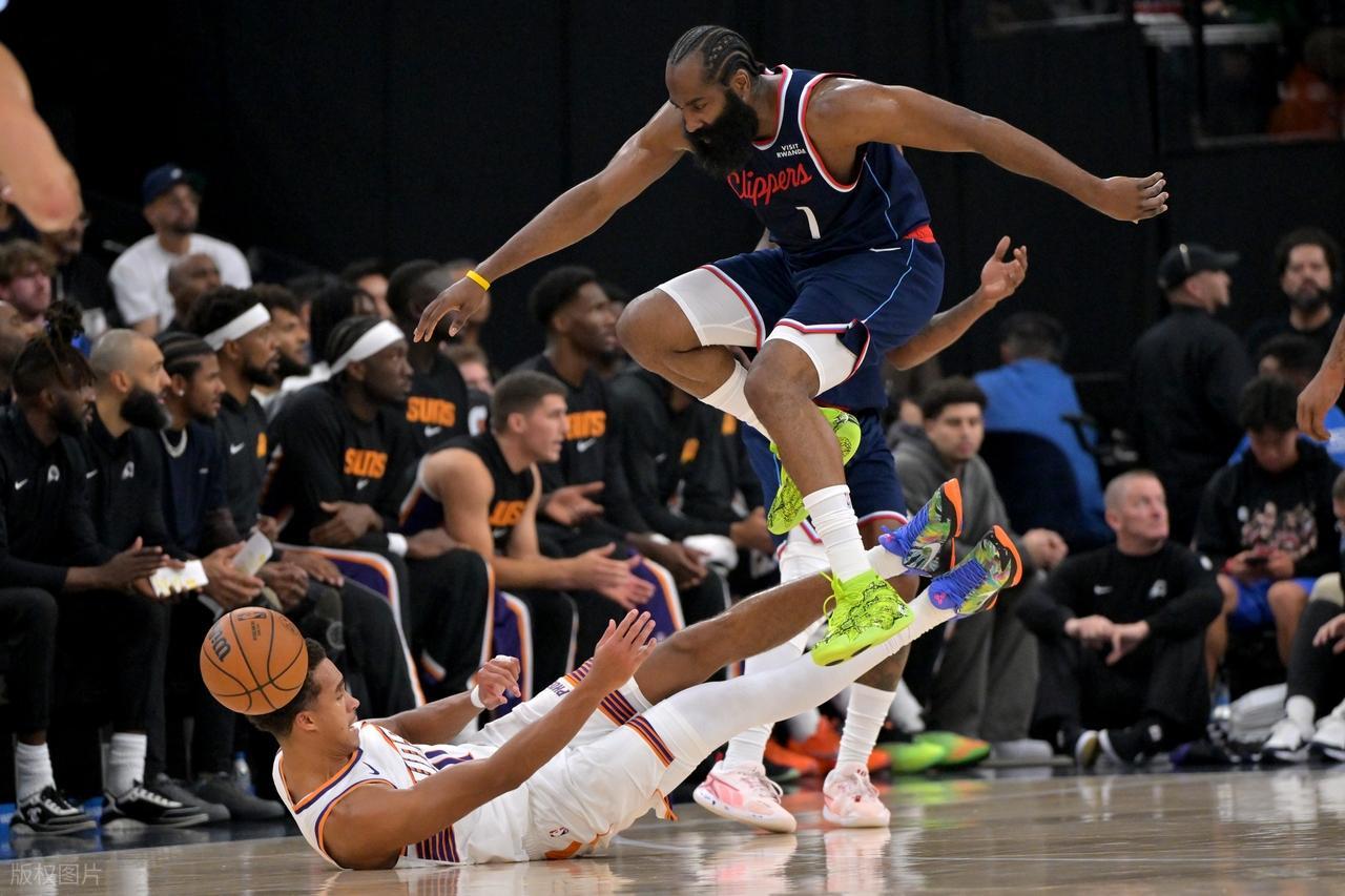 比赛一开始,琼斯便冲击篮筐得手,但太阳迅速回应一波9-2的小高潮。哈登通过2+1为快船止血,随后小卡接管进攻,快船回敬一波14-11反超比分。然而,狄龙和阿伦连续命中两记三分,太阳一波8-0打停快船。暂停回来后,哈登助攻琼斯命中三分,并造犯规罚球稳住局势。布克在进攻中打成3+1,裁判还升级为一级恶意犯规,但哈登随后爆发,连续命中2+1、撤步三分和接球三分,一人连砍9分追平比分。首节结束,快船以34-33领先太阳。