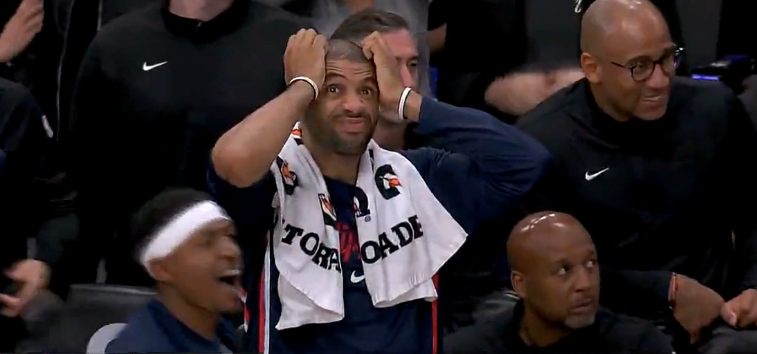 面对狄龙的挑衅,哈登的回应简单而直接——连中三个三分球,其中包括一个刚过半场的超远投射,瞬间点燃主场观众的热情。镜头捕捉到替补席上的巴图姆,他已被哈登的神奇表现惊出憨豆同款表情包,场面十分有趣。